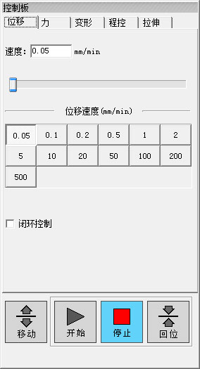 (5)支持多種控制方式,包括開環(huán)等速位移及等速力、等速應(yīng)力等多種閉環(huán)控制方式;并在高級操作者調(diào)試閉環(huán)參數(shù)過程中給出標(biāo)準(zhǔn)參考曲線,從而使用戶實(shí)際觀察到各參數(shù)對閉環(huán)效果產(chǎn)生的影響。